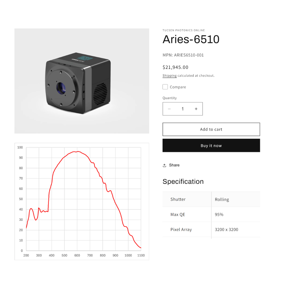 We give you all the specifications and the marketing positioning waffle. Our comparison tools help you compare products-to-product specifications or feature to feature for attributes like QE at specific wavelengths