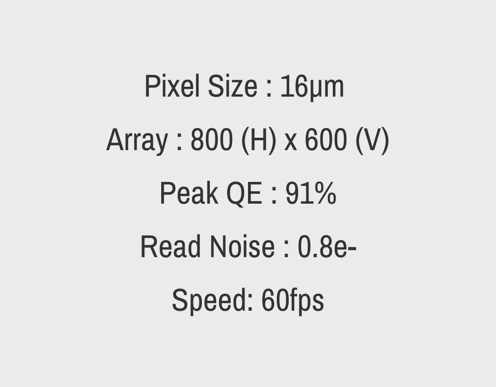 With an ultra-low readout noise of just 0.9 e-, the Aries 16 sCMOS can replace EMCCD cameras at similar speeds without the downsides of excess noise, gain aging, or export controls. While smaller pixel sCMOS sensors can achieve equivalent pixel sizes through binning, the associated noise penalty increases readout noise to 2-3 electrons, reducing sensitivity. The Aries 16 sCMOS avoids this issue, ensuring superior sensitivity.