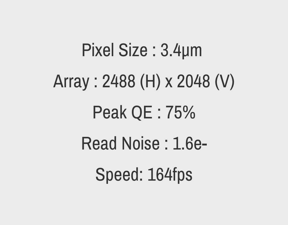 The Libra 3405M sCMOS incorporates global shutter technology, allowing for clear and rapid capture of moving samples. It is also equipped with a fast GigE interface, which doubles the imaging speed compared to USB3.0. The camera can achieve full resolution speeds of up to 100 fps at 12-bit depth and 164 fps at 8-bit depth, significantly enhancing throughput efficiency for batch detection in instrument systems.